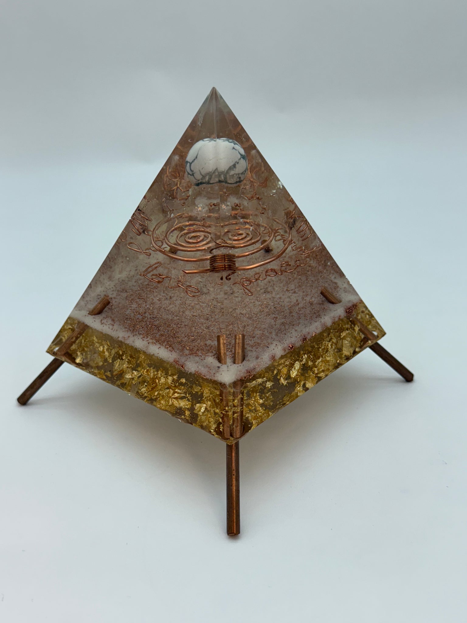 Woven into the design are four copper-wrapped intention words, Love, Peace, Prosper, and Joy, each chosen for its high-frequency resonance. Copper conducts these encoded intentions continuously, allowing their vibration to circulate throughout the pyramid and radiate into the surrounding environment.